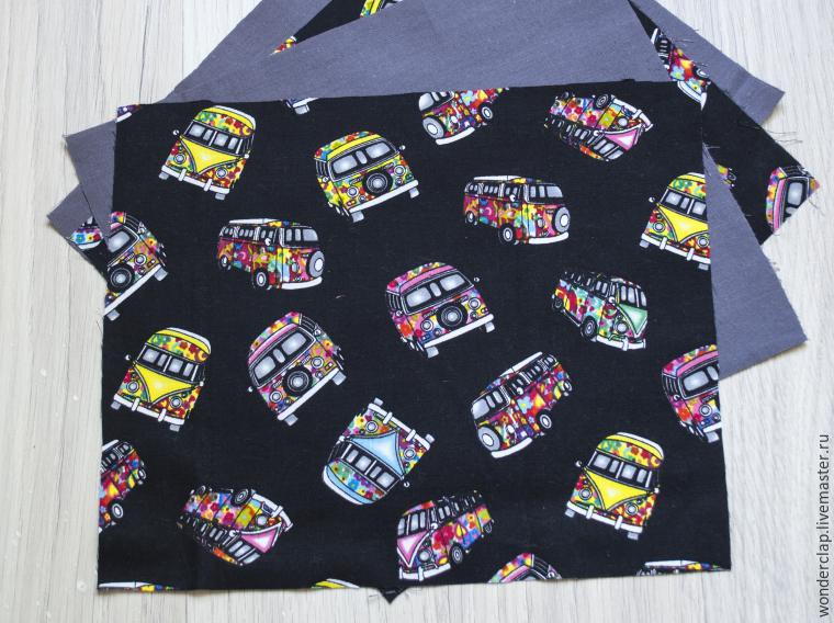 1. Выкроите из каждого вида ткани по 2 детали размером 25х16 см каждая.
