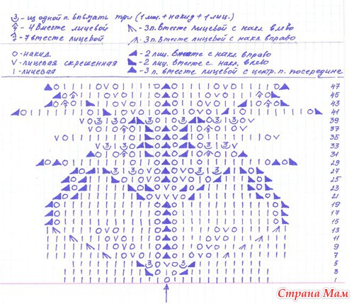 Донышко от зеленой части шапочки и тулью вяжем вот по этой схеме: