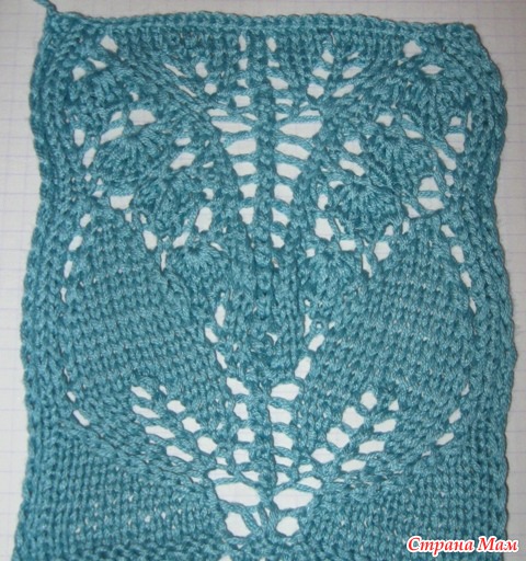 Расчет вязания дан при плотности образца, выполненного узором «ландыши» мохеровой пряжей: 1 раппорт (29 п.) х 45р. = 12 х 10 см.
