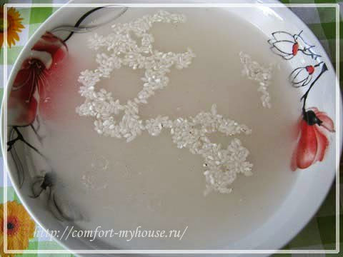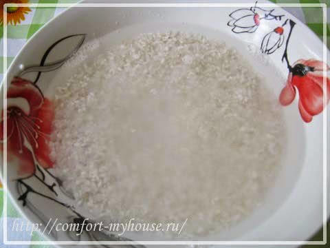- Рис вымыть, всыпать в теплую воду, оставить на 40 минут.