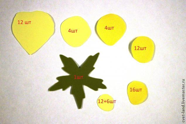 Из фоамирана вырезаем заготовки будущих лепестков.