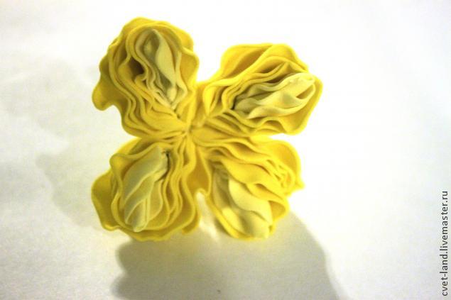 Обязательно краешки подкручиваем пальцами, придаем ему живость, пока цветок не собран, это можно сделать легко.