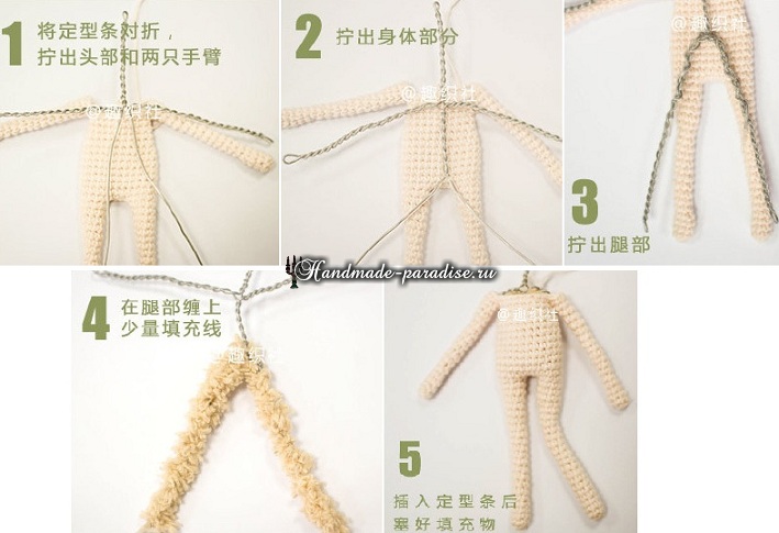 Для вязания куколки амигуруми нам понадобится пряжа нескольких цветов для туловища и одежды куколки, крючок, наполнитель, проволока для каркаса, черные бусины для глазок, нитки с иголкой и хорошее настроение).