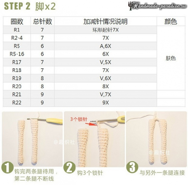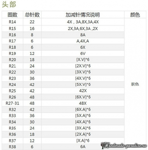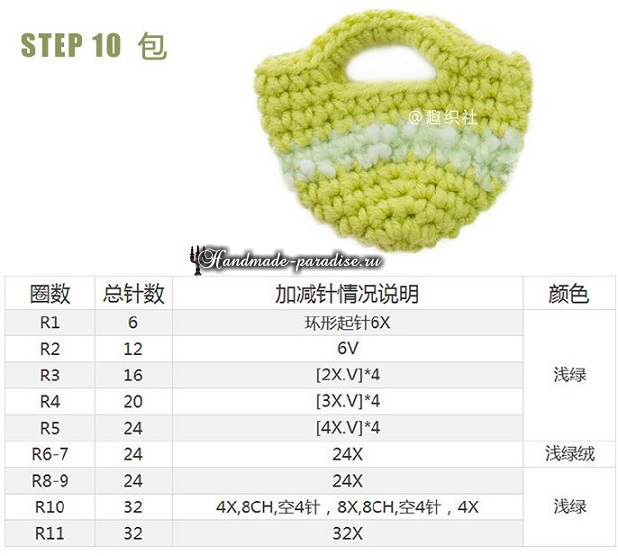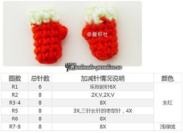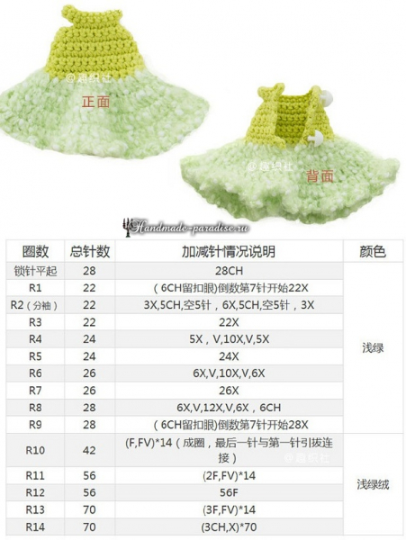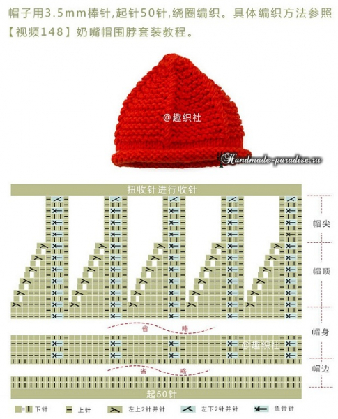 Описание вязания на китайском языке, но разобраться можно и без его знания. Правда, кое-что придется додумать, но ведь это же здорово! Основное здесь указано — перечень рядов и количество петель.