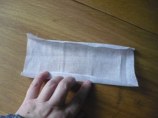 Начнем мы с головы. Я взяла полосу от старенькой простыни размером 10 х 120 см.