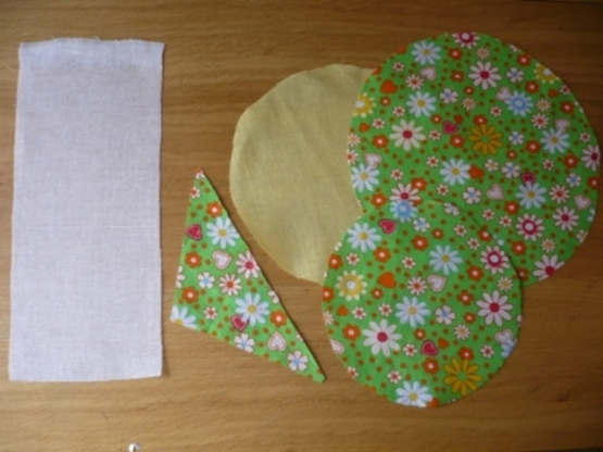 1. Обводим по шаблону круги на цветной ткани и вырезаем их.
