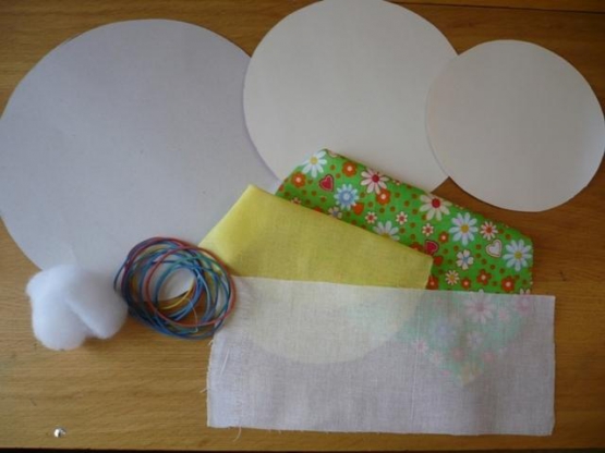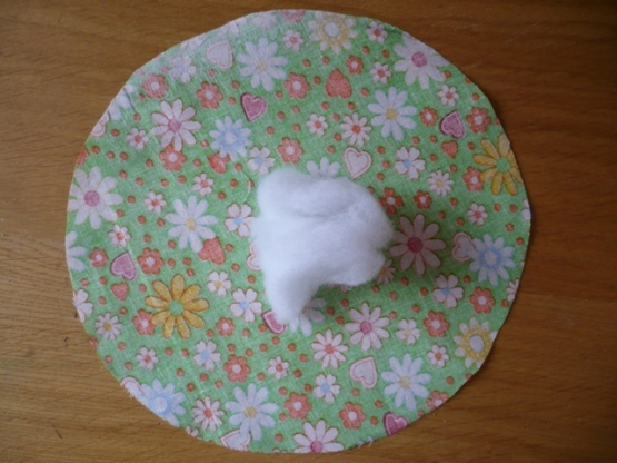 4. На самый большой цветной круг кладём посередине синтепон или вату – это будет голова.
