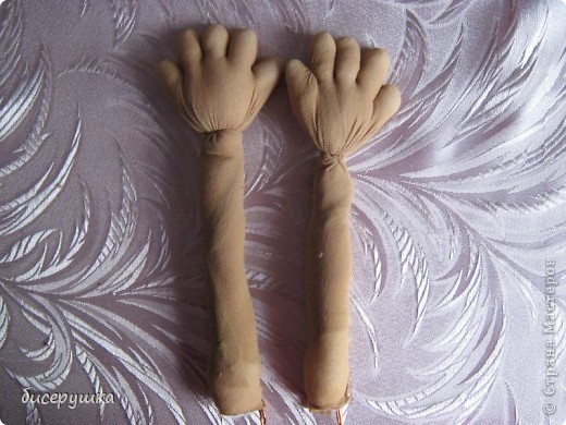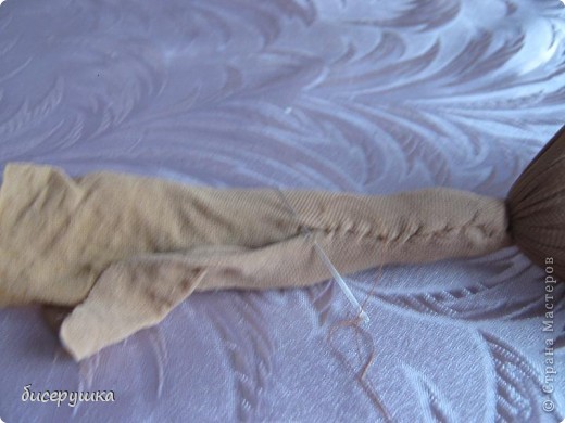 остальную часть капрона прошиваем по всей длине руки, подложив немножко синтепона.