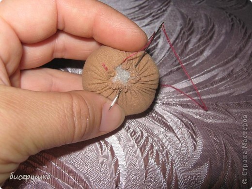 - Набиваем заготовку синтепоном и затягиваем нитки