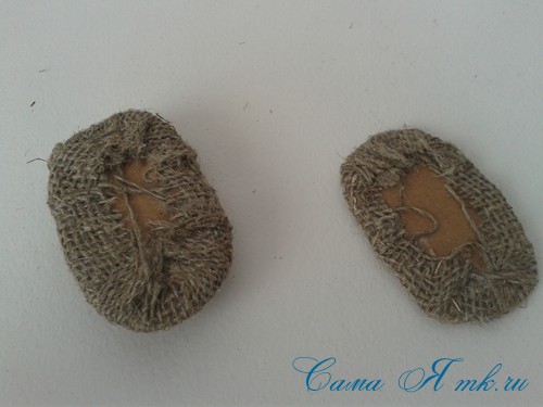 Оклеиваем заготовки мешковиной и склеиваем их между собой изнанкой друг к другу.