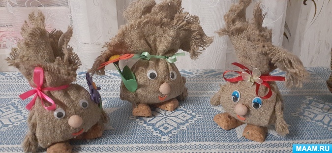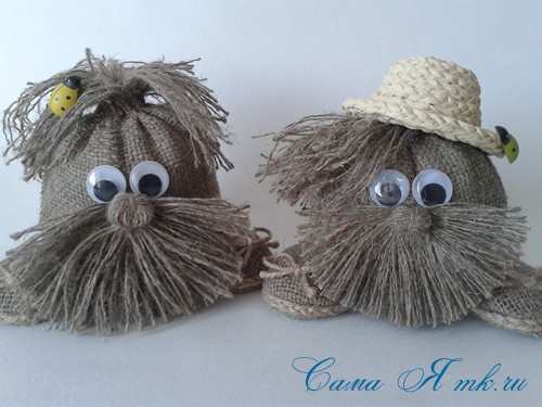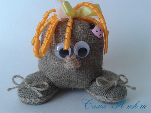 Домовенок из мешковины, капрона и катушек. Мастер-класс