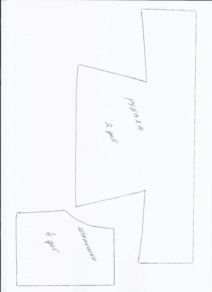 - материал для одежды (ткань темного цвета для штанов и цветная для рубашки);
