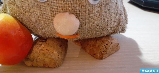 Горячим пистолетом приклеиваем лапти к туловищу.
