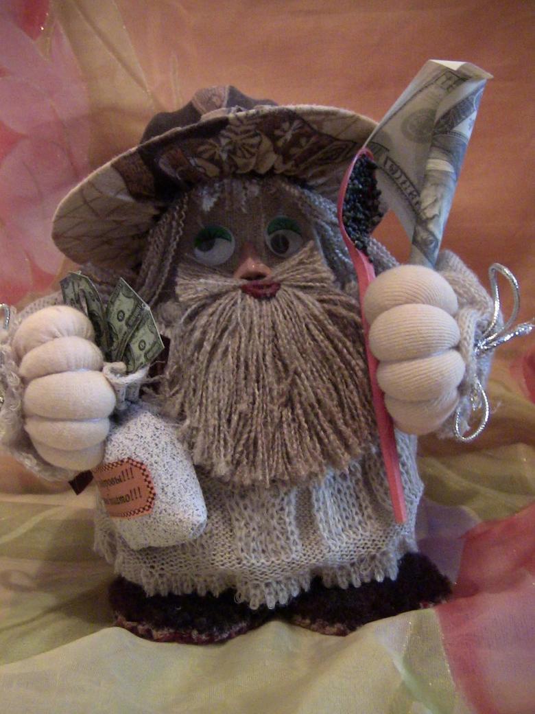 Сбоку на шляпке можно приклеять красивый цветок, а можно и так оставить . Что дать в ручки домовому – это уже как подскажит Ваша фантазия. Можно в одну руку денежный мешок, а в другую денежное дерево или букет, как у моих домовых, а можно руками обхватить один большой мешок багатсва, счастья, добра или, например, веничек с украшалочками. Вобщем, творите! Удачи Вам! И большое спасибо, что досмотрели доконца!
