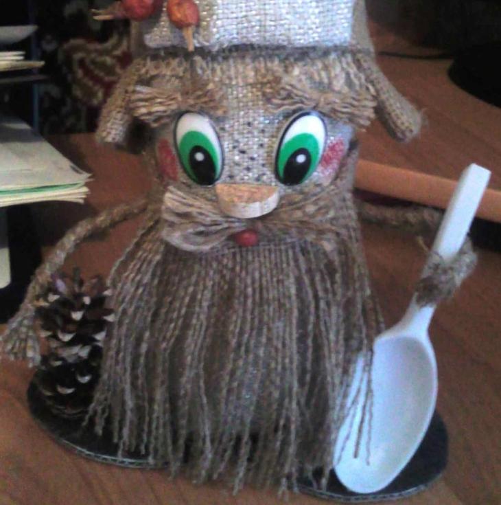 Дедушка-домовой, украшенный обычной пластиковой ложкой