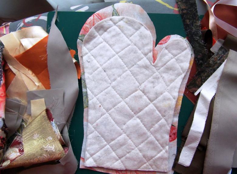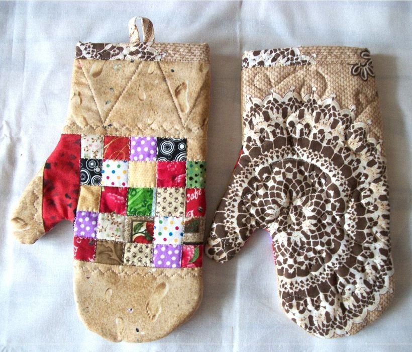 Варежки или рукавички. Одна так же из распространенных форм для прихваток. Они одеваются на руку и используются, что бы вытащить посуду из духовки и не обжечься. Советуем делать удлиненный вариант, так как можно обжечь не только пальцы и ладони, но и запястья.