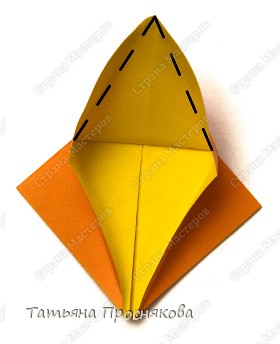 Базовая форма «птица» имеет два вида: длинный (рис. 9) и короткий. Короткий вариант получается, если опустить верхние уголки-крылья. К короткому варианту можно прийти и другим способом.