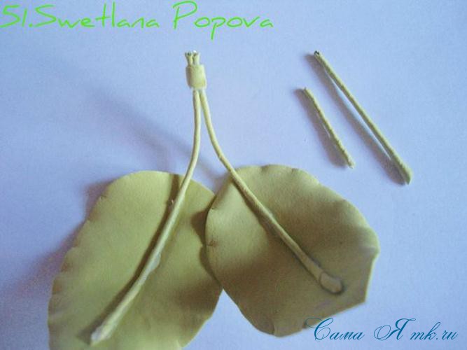 Каждую нагретую заготовку хорошо разминай и растягивай, чтобы она становилась тоньше и нежнее. Делай вогнутые лодочки, заминая края, а у основания зажми небольшую складку. Зафиксируй эту складку пинцетом и прогрей зажигалкой – это будет место крепления к стеблю.