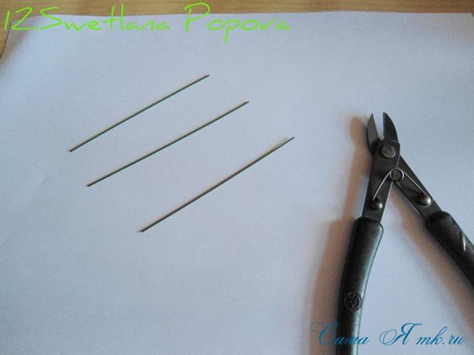 Длинные стебельки нам не нужны, обернув полосочкой фома, фиксируем (клеим) оба стебелька и откусываем кусачками лишнее.