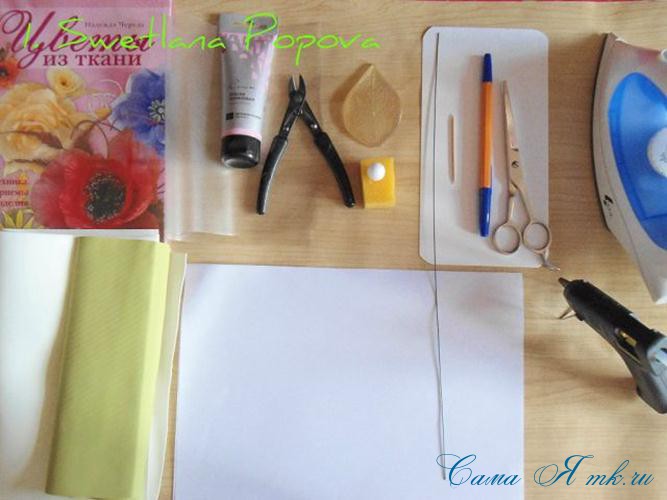 Перед тем как приступить к работе и просмотреть готовые выкройки розы, рукодельница должна убедиться в том, что все рабочие инструменты и материал для изготовления цветка на месте. Для этого процесса понадобятся: