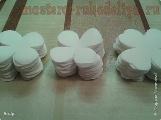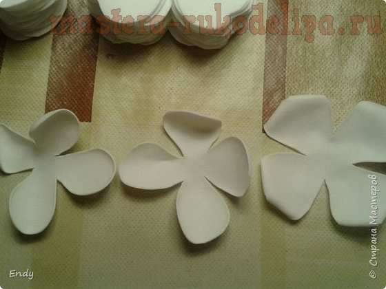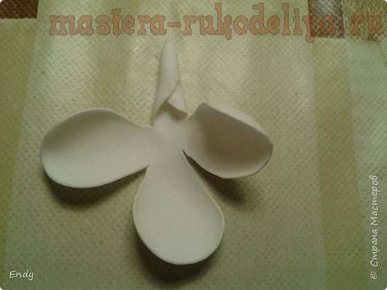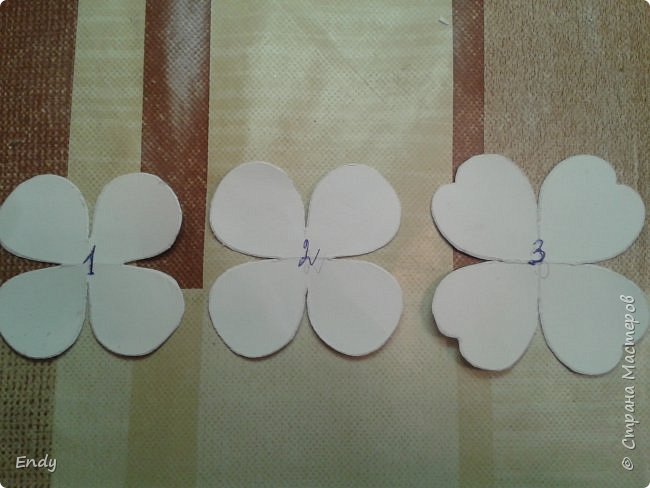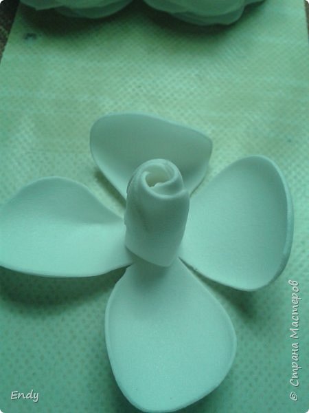У заготовки № 3 закручиваю краешки лепестков от себя. У вас должно получиться так как на фото.