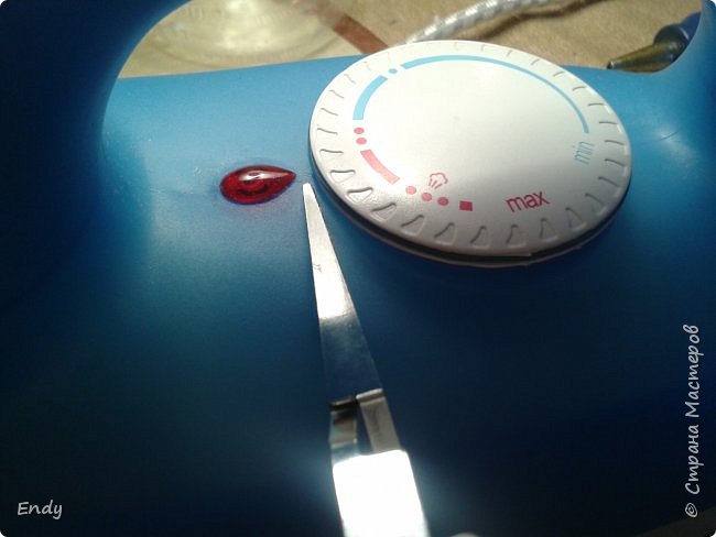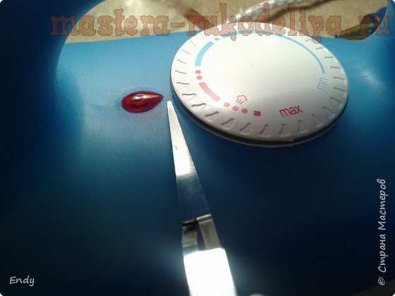 - Теперь нужно приклеить к шарику тесьму, дождаться, чтобы клей хорошо схватился.