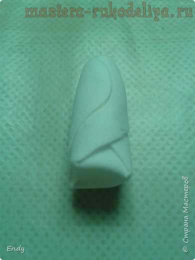 Как перевернули, так же держим двумя руками лепесток и быстро, одновременно подкручиваем его с двух сторон, а затем подворот сверху.