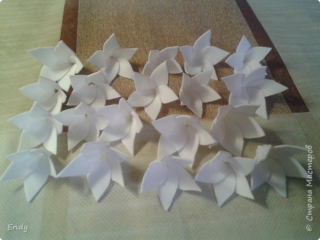 Небольшие цветочки из такого материала получаются особенно красивыми