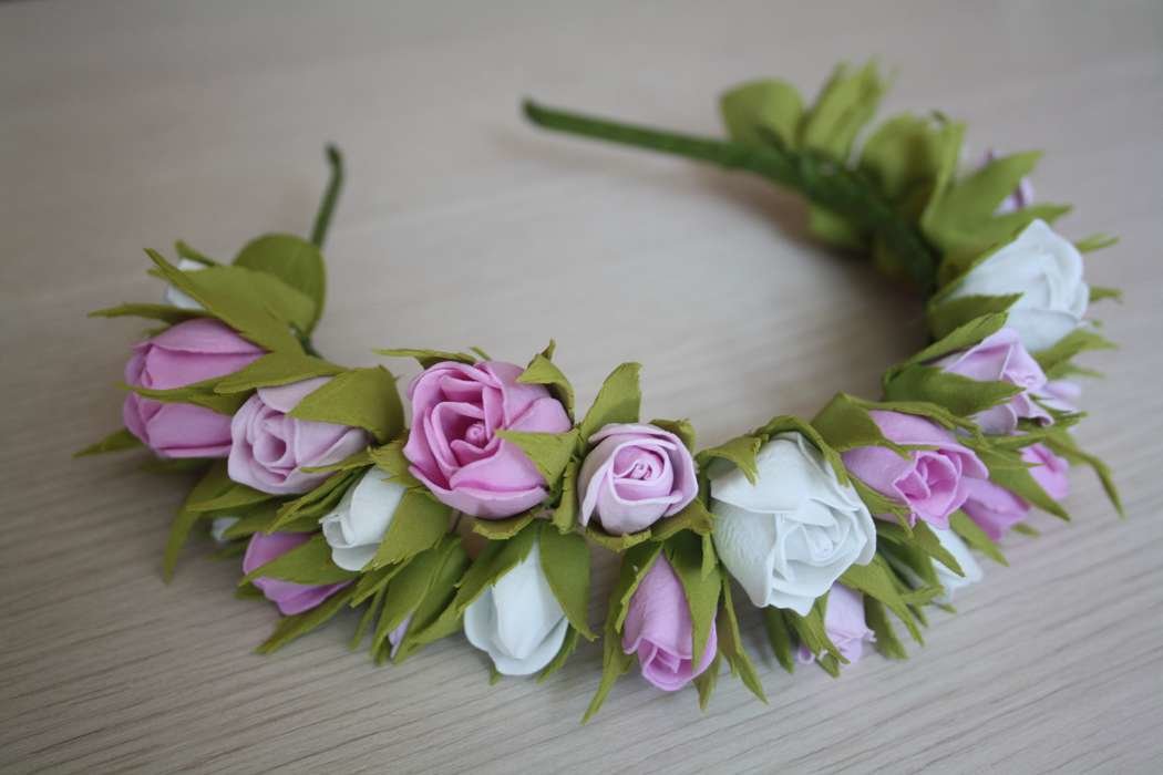 Преимущество создания такого украшения в том, что фоамирану вы можете придавать совершенно разную форму, вытягивая его пальцами или разогревая на горячей поверхности утюга.