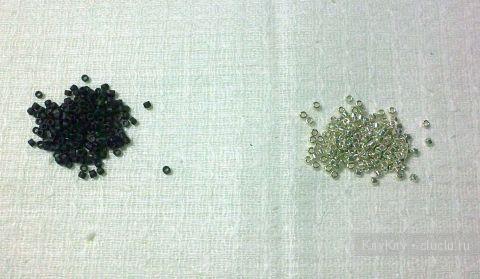 – ровный бисер цилиндрической формы двух цветов (в примере основной бисер – серебристый, а дополнительный – черный)