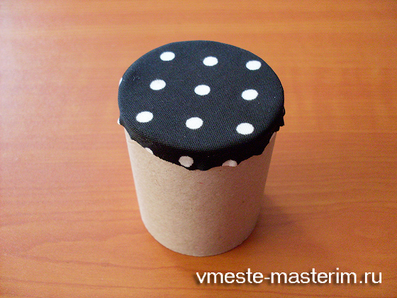 - Теперь нужно одеть круг на сделанный из картона цилиндр и прижать их, чтобы они склеились.