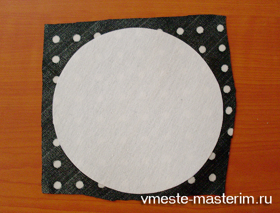 Теперь пришиваем получившуюся деталь к большому кружочку, ровно по центру.