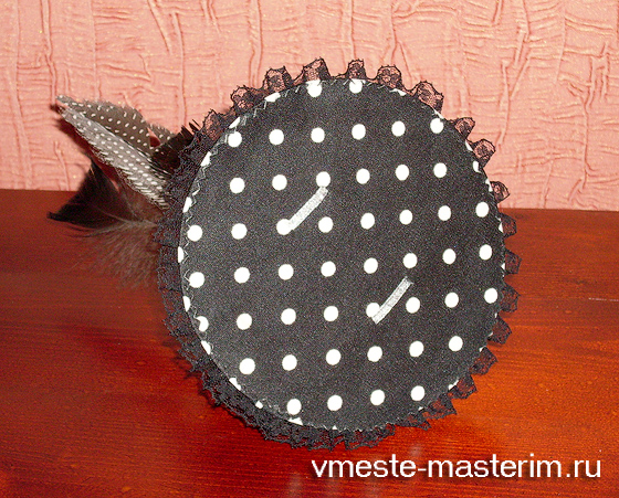 Днище шляпки также сделала из картона, обтянутого тканью.