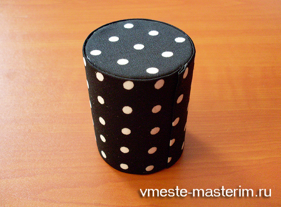 Из подходящей ткани по форме поролона, но слегка делая отступ на припуск, нужно вырезать деталь, а затем обтянуть ею поролон.