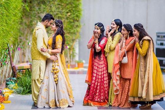 Подружки невесты одевают длинные сари ярких цветов с индийским орнаментом. Их наряды не должны быть слишком вызывающими, ведь главная принцесса на празднике – невеста. Друзья жениха одеваются примерно так же, как и он, но не слишком ярко. Девушкам стоит тоже расписать руки хной, чтобы подчеркнуть тематику свадьбы. Все эти детали оговариваются заранее, чтобы было время подготовиться.