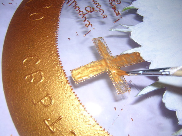 А крестик покрываем золотой краской.