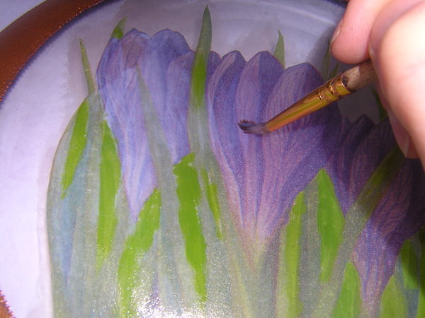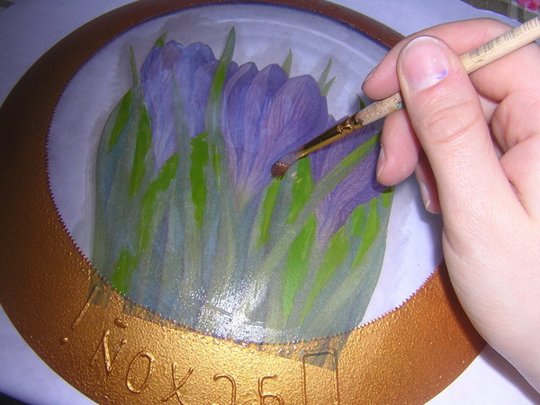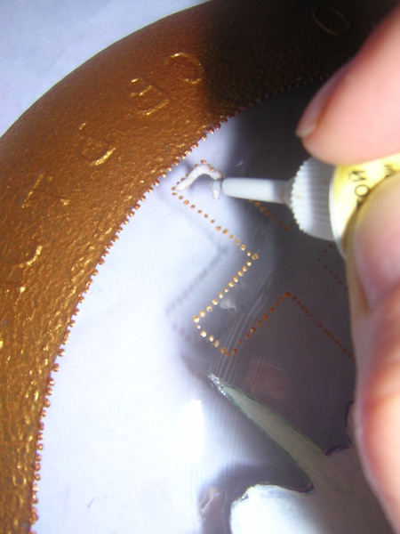 И золотым контуром по стеклу точками обрисовала маленькую тарелку.