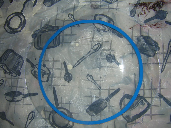 Подождем минут 5, чтобы контур высох, и аккуратно снимаем маленькую тарелку с большой.