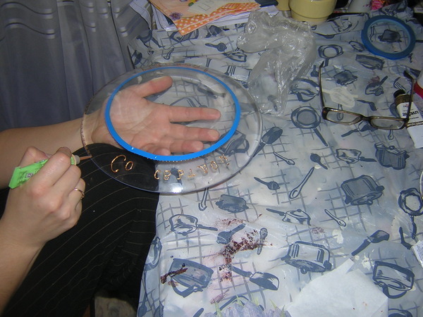 Не пугайтесь следы клея на чистом стекле, рядом с мотивом все-равно будут, мы ж не волшебники:) Потом их спокойно смоем.