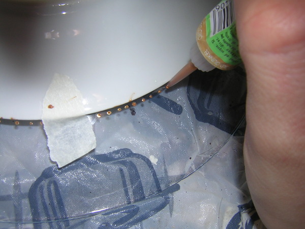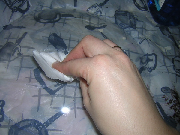 Стараемся особенно много клея не ляпать на тарелку, клеим аккуратненько. Излишки промакиваем влажной тряпочкой, заодно разглаживаем, если где-то есть, складки.