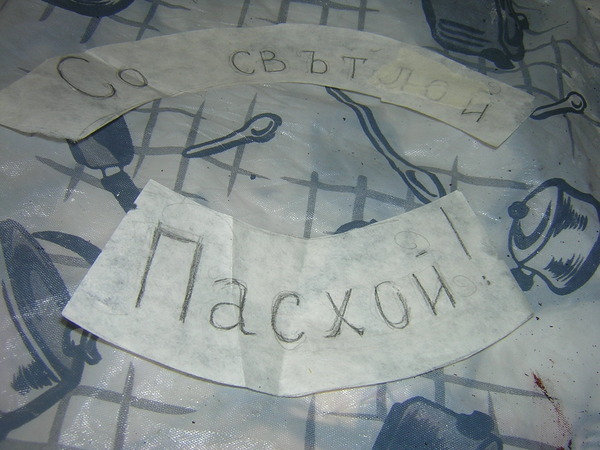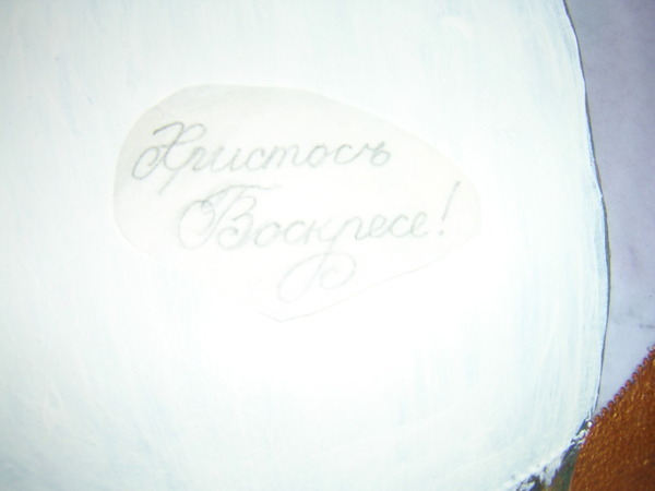 И последнее, рисуем крестик и пишем “Христос Воскресе”. Поскольку у меня тарелочка именная, я сверху еще прибавлю имя.
