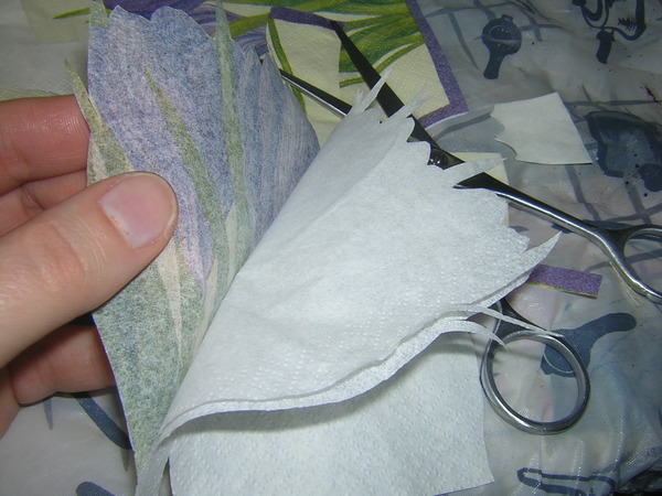 Вырезаем мотив очень аккуратно по контуру и отделяем самый верхний слой.