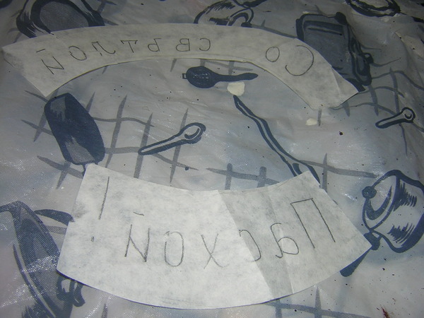 Теперь переворачиваем бумажки и обводим надпись с обратной стороны. Если бумага у вас плотная, удобней это будет сделать на подсвеченном стекле (или просто на окне, днем).