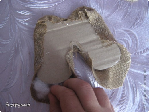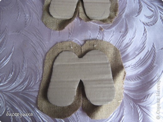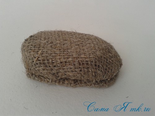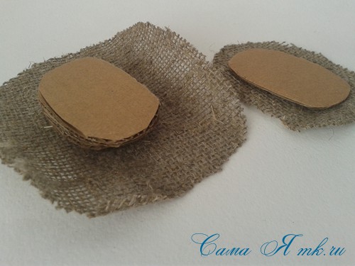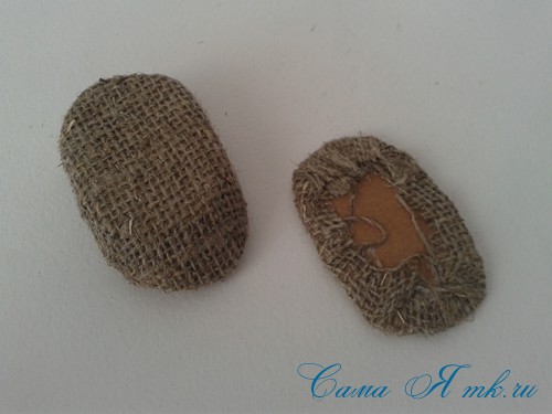Оклеиваем заготовки мешковиной и склеиваем их между собой изнанкой друг к другу.