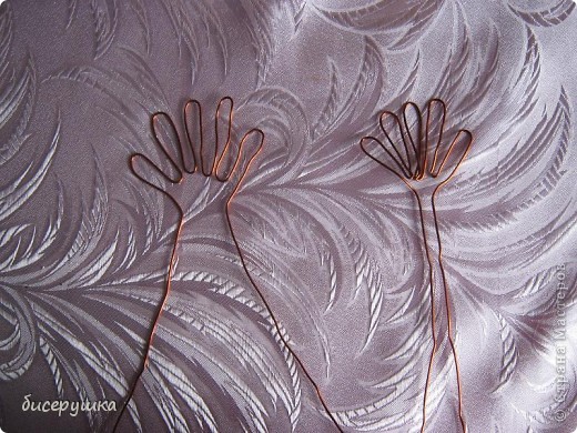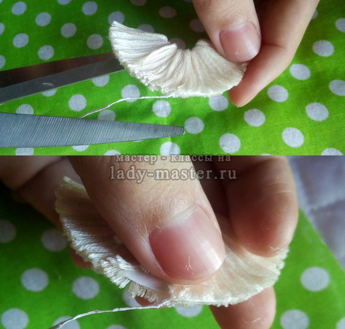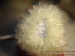 Изготовление бороды: пучок нитей перевязываем такою же ниточкой посредине.