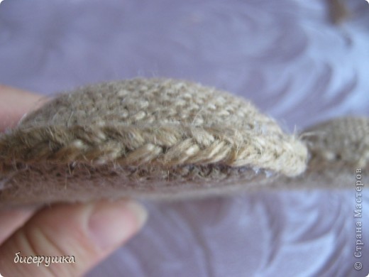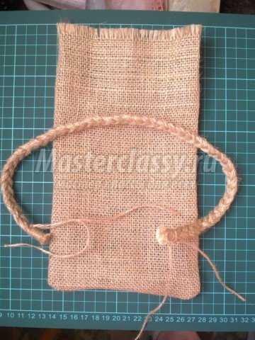 Шов оформляем косичкой шпагата и на горячий клей подклеиваем их к нашему мешочку.