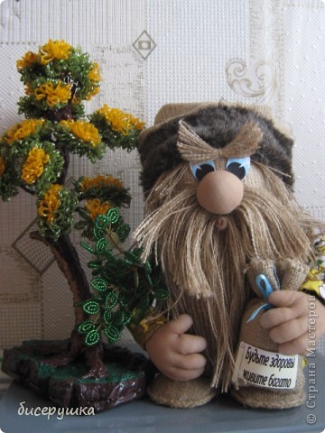 Сбоку на шляпке можно приклеять красивый цветок, а можно и так оставить . Что дать в ручки домовому – это уже как подскажит Ваша фантазия. Можно в одну руку денежный мешок, а в другую денежное дерево или букет, как у моих домовых, а можно руками обхватить один большой мешок багатсва, счастья, добра или, например, веничек с украшалочками. Вобщем, творите! Удачи Вам! И большое спасибо всем, у кого хватило сил досмотреть до конца!