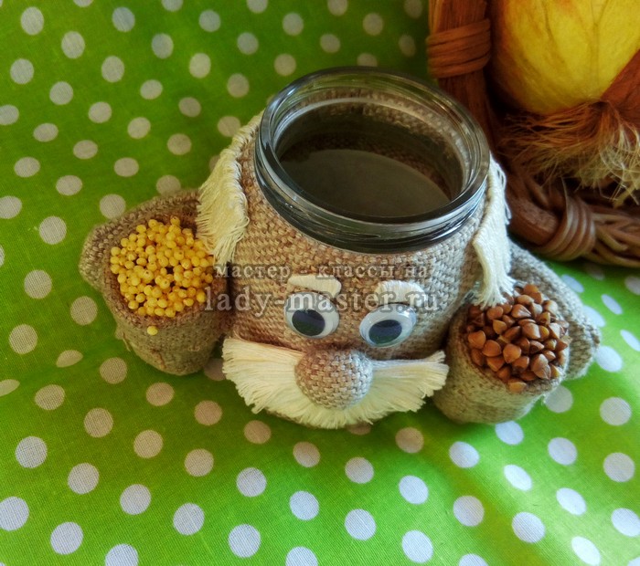 Домовенок своими руками из мешковины и баночки для детского питания, мастер – класс
