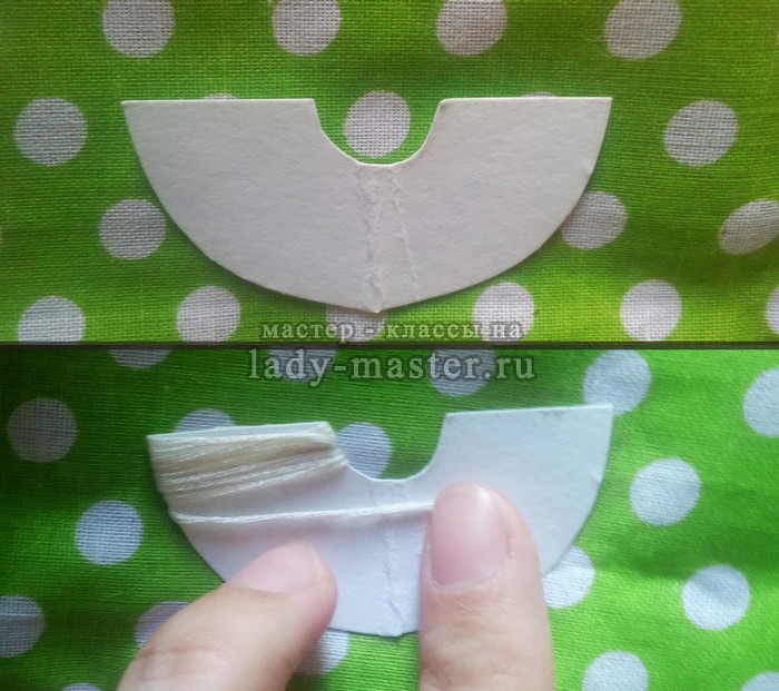 . хорошенько затянув, закрепляем нашуу заготовку несколькими стежками и отрезаем нитку.