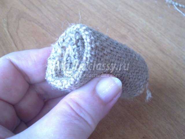 Стягиваем и закрепляем нить. Получаем основу домовёнка.